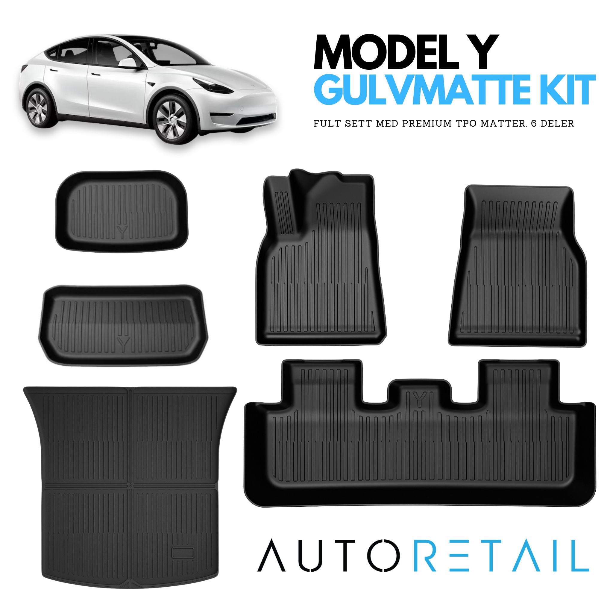Gulvmatte kit til Tesla Model Y 2021 - 2024. Komplett sett med TPO kvalitetsmatter til førerside, passasjerside, baksete, bagasjerom, frunk og trunk. 6 deler totalt.
