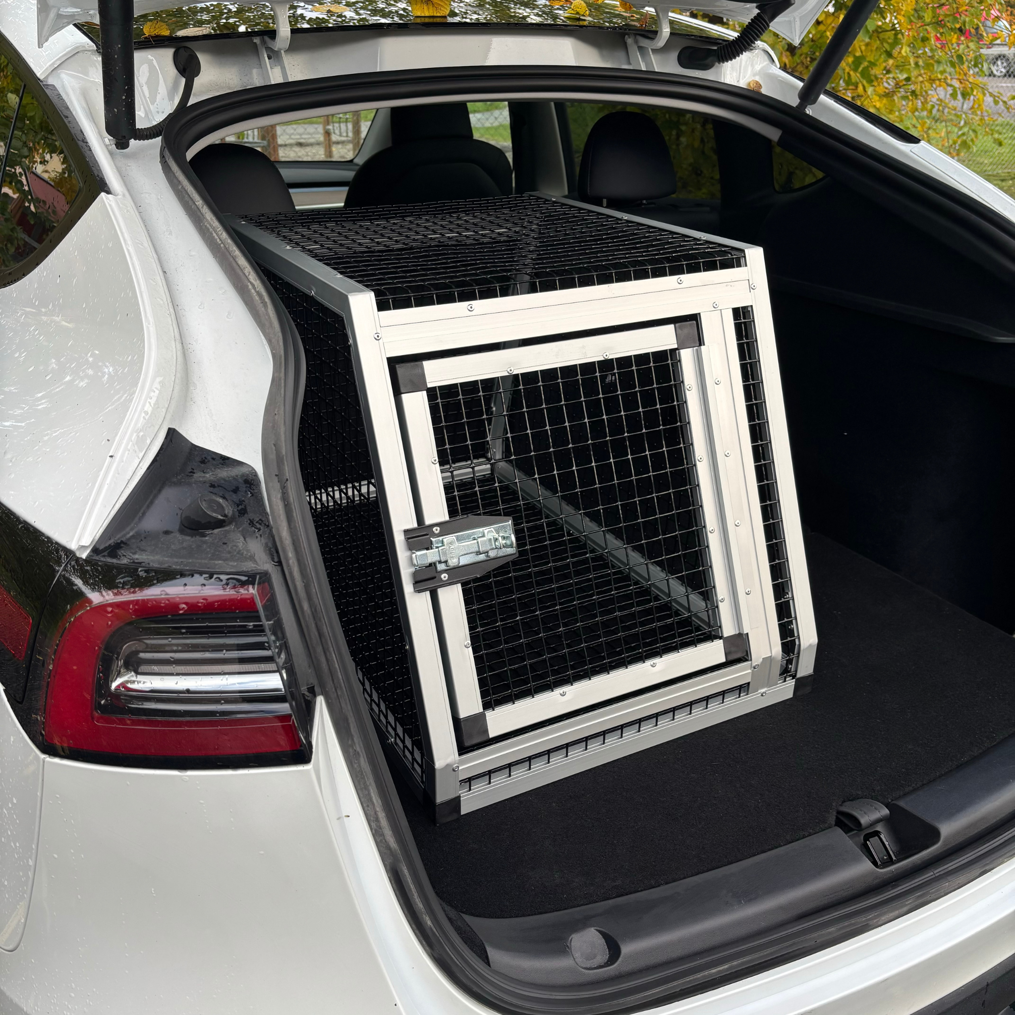 Norsk produsert hundebur til din Tesla Model Y. Sikrer at kjæledyret ditt har både trygghet og komfort under bilturer. Buret fungerer som et fast og trygt sted for hunden, og beskytter mot risting, støt og plutselige bevegelser. Det er også laget for å være knirkefritt. Når du er på hytta eller andre steder utenfor hjemmet, vil buret gi et trygt og behagelig sted for kjæledyret å hvile og sove.