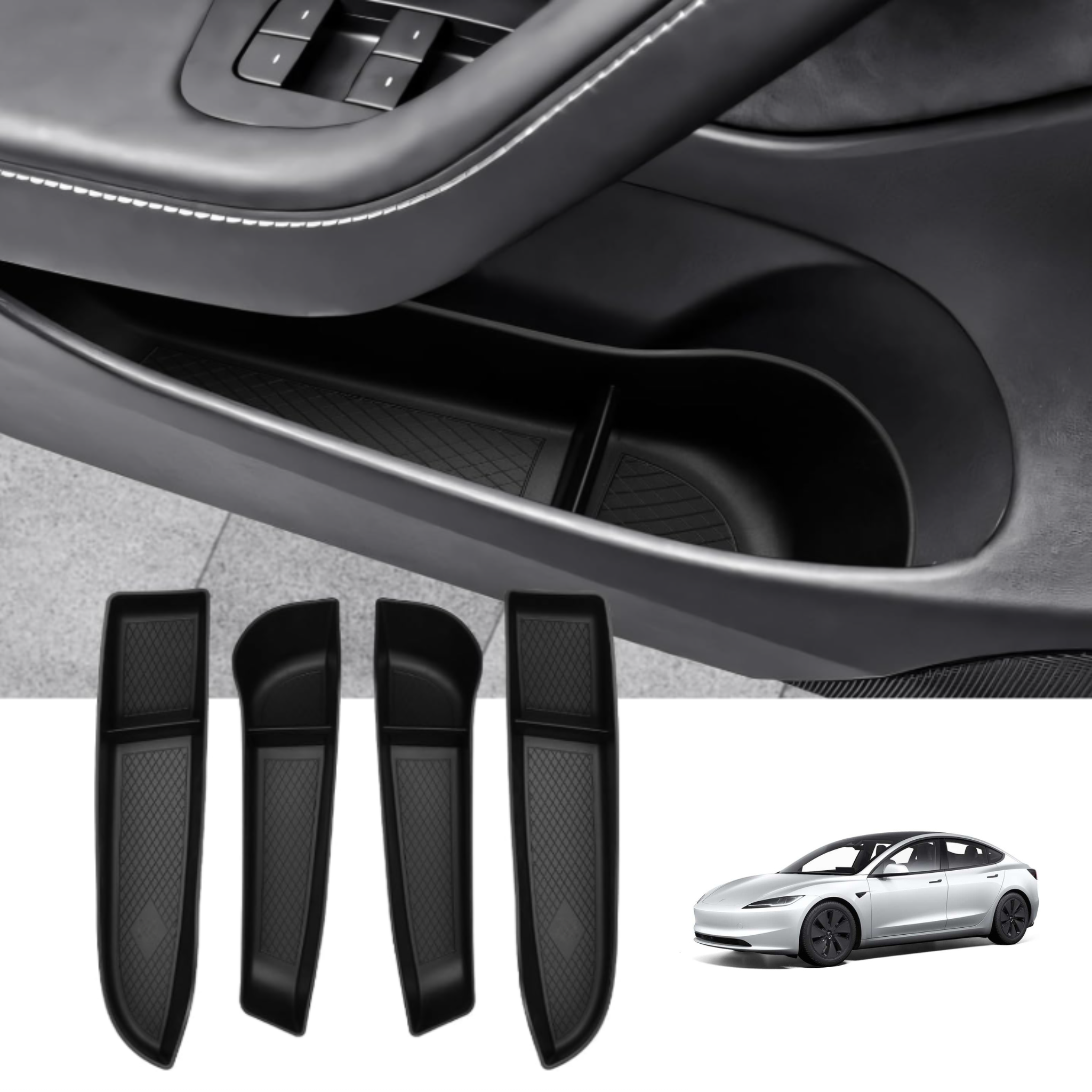 Hold dørene i Tesla Model 3 ryddige og rene med disse smarte oppbevaringsboksene. Spesielt utformet for å passe perfekt i dørrommene til Tesla Model 3 Highland